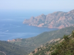 Depuis ce col la vue est encore plus belle et le rouge des rochers sur la mer lui donne un aspect violet. De l'autre coté c'est le golfe de PORTO qui apparaît avec un autre paysage en perspective.