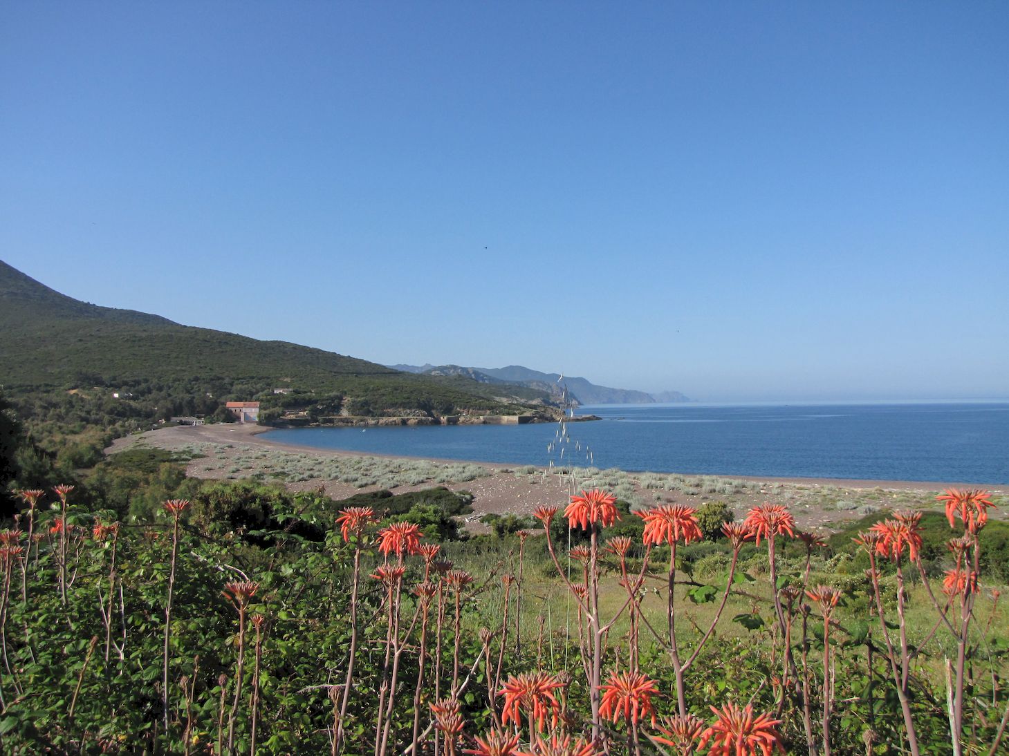 C'est par la départementale d81 bis qui longe la mer que nous poursuivons notre descente vers le sud en passant par le centre. Cette Etape sera certainement la plus riche en décors car nous allons passer de la mer turquoise à la montagne et même aux sommets enneigés. Nous allons aussi passer pour la première fois en corse du sud. Au fait vous savez pourquoi 2A et 2B ? (2a Ajaccio et 2b Bastia)