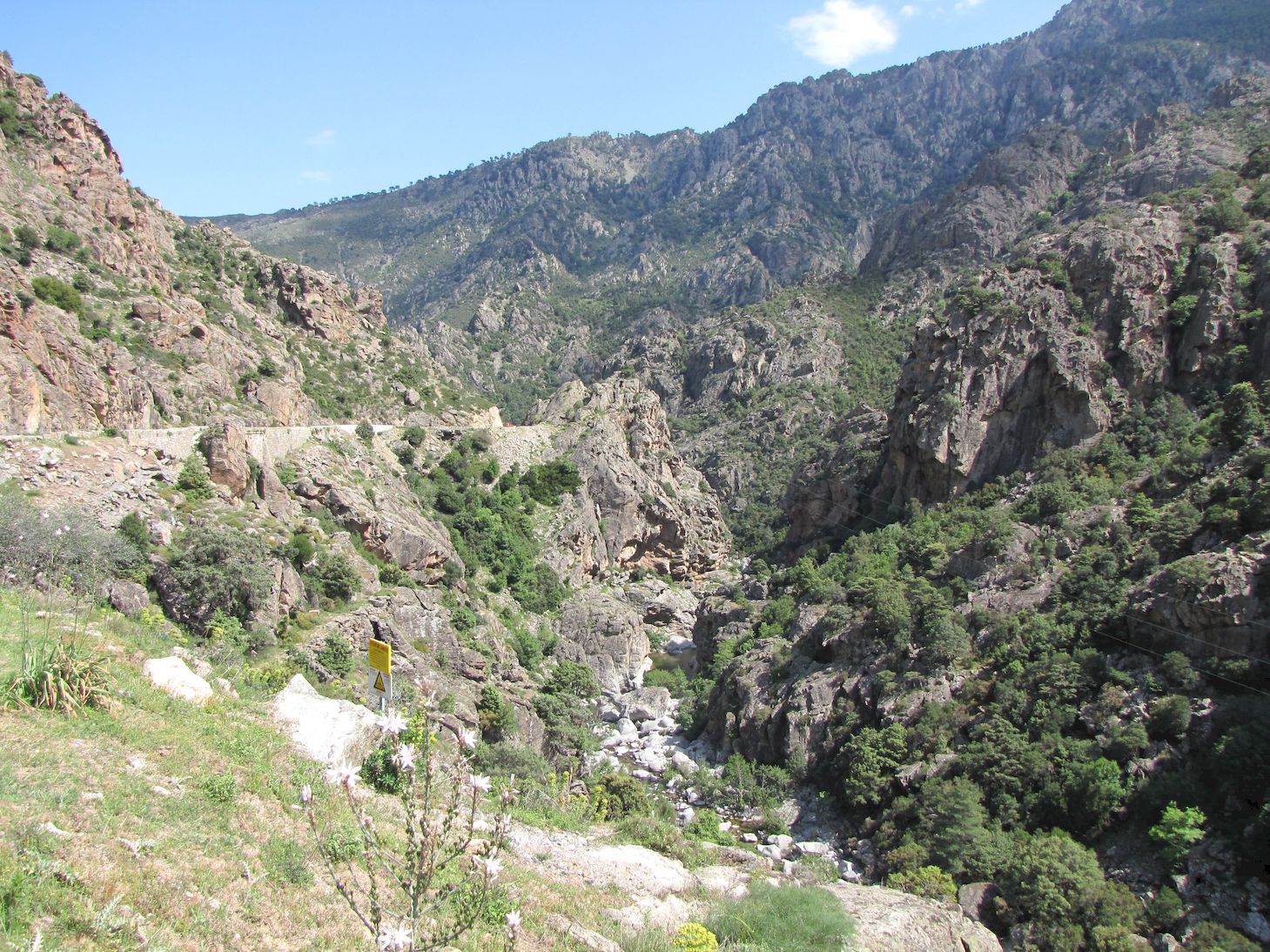 C’est l’unique voie de circulation entre le Niolu et la plaine. Un travail considérable a été réalisé pour permettre de construire une route, certes peu large et très tortueuse, dans un tel décor. Elle a été ouverte à la fin du XIX ème siècle. On comprend pourquoi Il servait d'asile aux bandits.