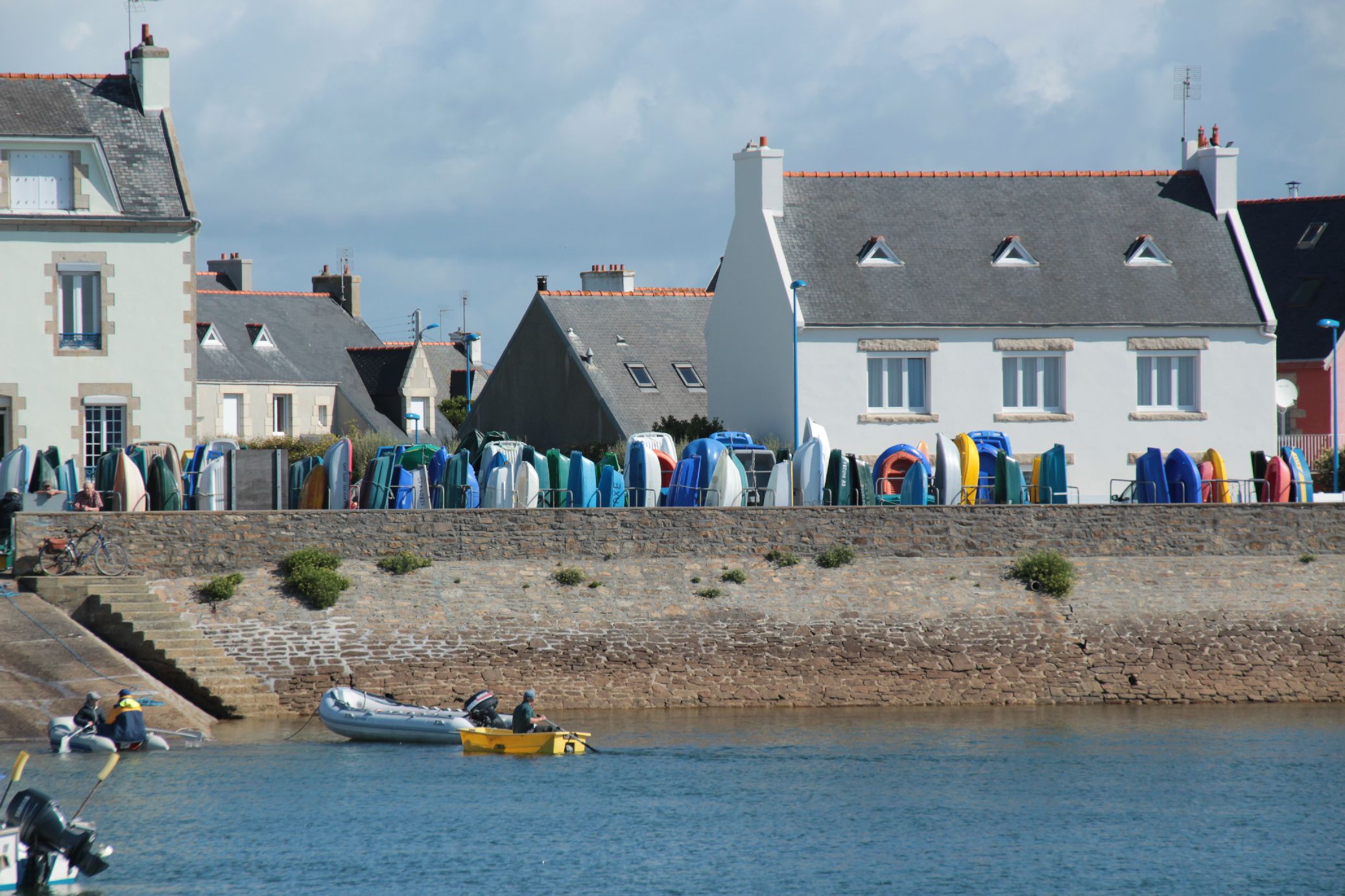 Alignement de barques permetant d'aller rejoindre les bateaux de pêche.